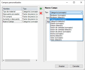 Se agregó la posibilidad de crear campos personalizados de factores de precio, enlaces, textos, fechas y valores booleanos.