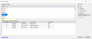 Suponiendo el caso que se utilice el prefijo MA- para los códigos de los materiales y el mayor valor utilizado de la serie es MA-0020, si se utiliza el prefijo MA- el programa generará y asignará el código MA-0021.